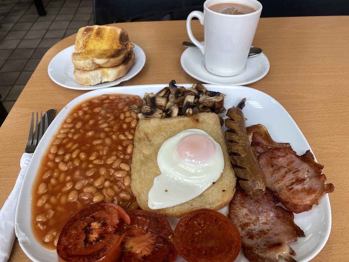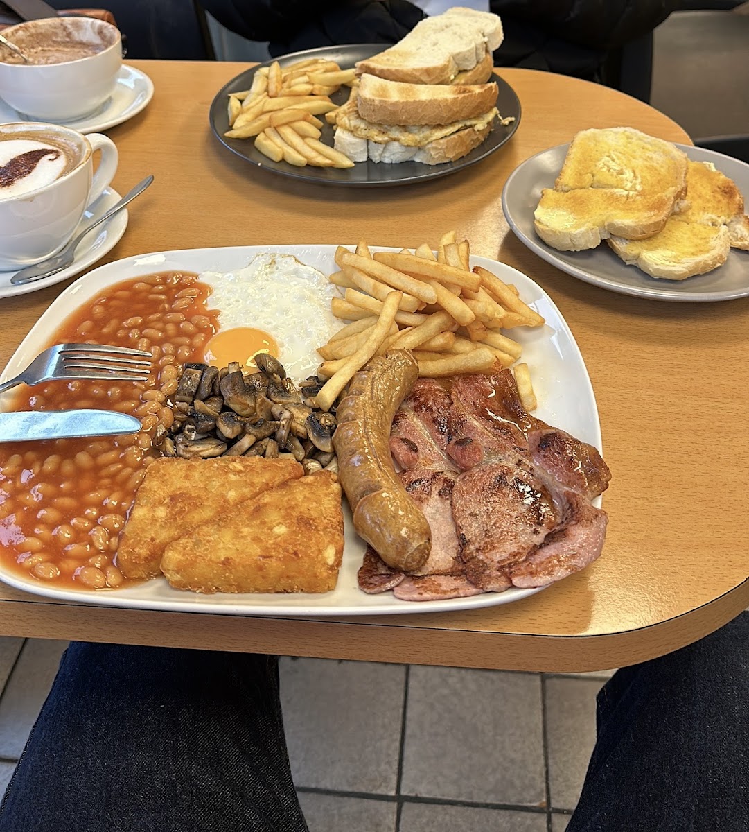 this is a perfect caf. really lovely breakfast that was the exact correct amount of grease. and i don’t know how theyve done it but my cup of tea was *perfect*. the guys who work here are so lovely too. 10/10 ! i got a full breakfast and two drinks for less than 10 pound btw